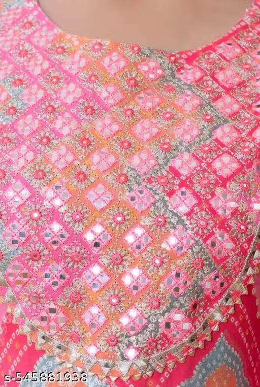 A perfect choice for everyday wear, this printed kurta features three-quarter sleeves, a round neck, and a flared hemline. Team it up with a pair of jeans or straight pants or palazzos along with some minimal accessories and sandals to complete your casual ethnic ensemble. This type of prints have always been popular in Indian ethnic wear. This printed rayon anarkali can make you look unique and stand out in a crowd. We also providing you many styling options in this catalog and these kurtis can be worn anywhere. When it comes to Anarkali Kurtis, checkered printed designs are extremely popular as well. Ethnic prints like block prints, paisley florals, and Kalamkari are being adored these days. We come in a comprehensive range of shades and colours. These Anarkali Kurtis are made in light flowy fabrics which is soft.