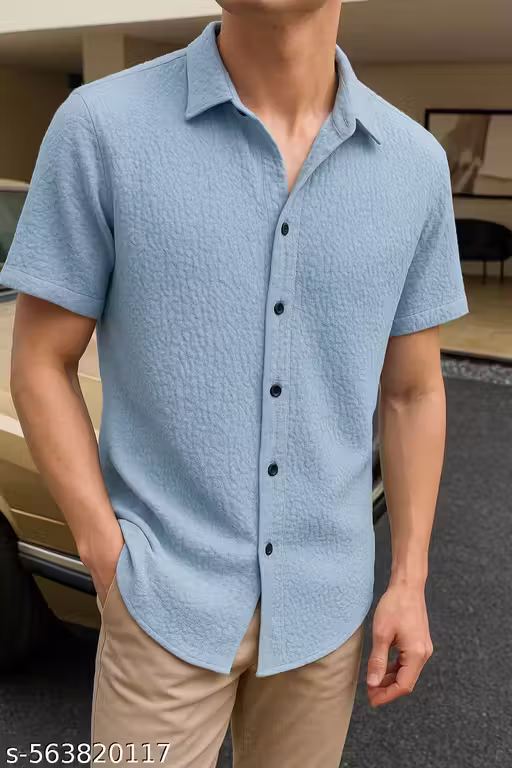 Name : Imported Stylish Self Designed Light Blue Popcorn Shirts For Boys And Mens|Casual Mens Wear||Unique Designed Shirt||Popcorn Printed Mens Shirt|