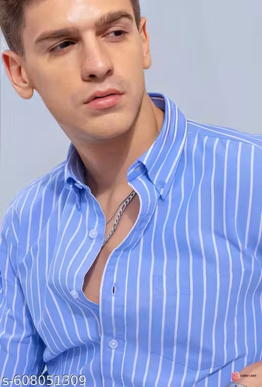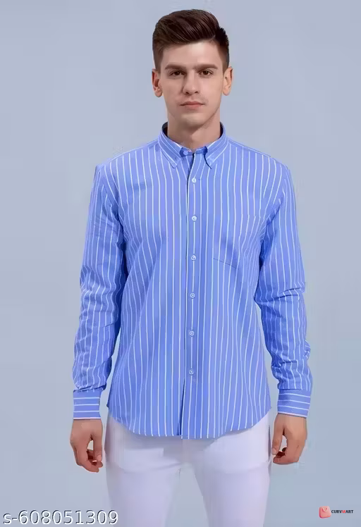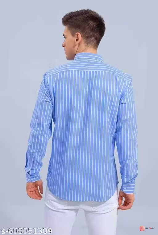 Name : X TOUCH, FASHION Men's Lining Regular Spread Collar Blue White Lining Shirt For Men's & Boy's