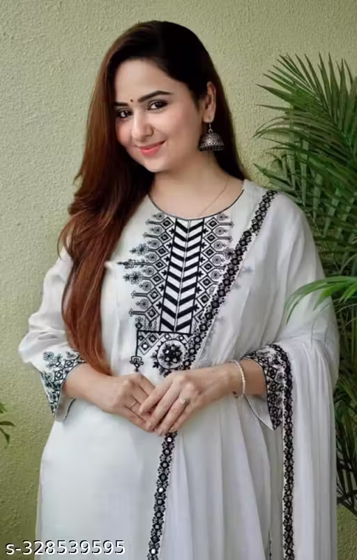 Name : Women Designer Rayon Embroidery Black Kurta Pant Dupatta Set