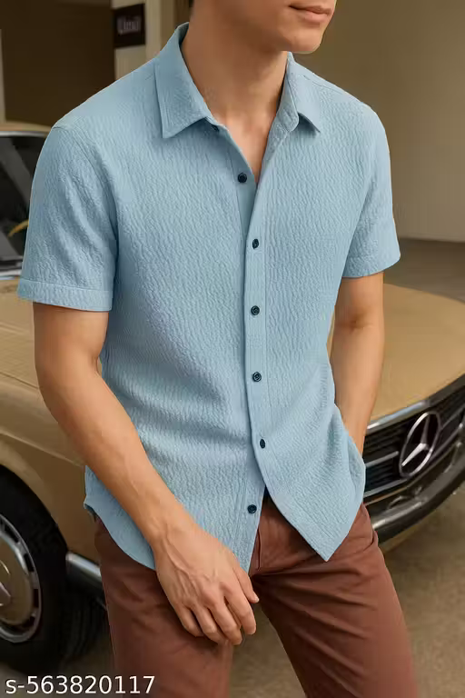 Name : Imported Stylish Self Designed Light Blue Popcorn Shirts For Boys And Mens|Casual Mens Wear||Unique Designed Shirt||Popcorn Printed Mens Shirt|