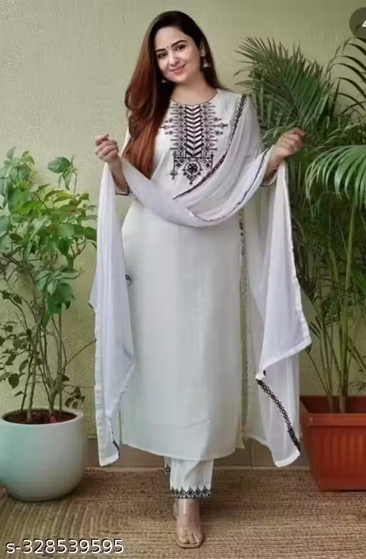 Name : Women Designer Rayon Embroidery Black Kurta Pant Dupatta Set